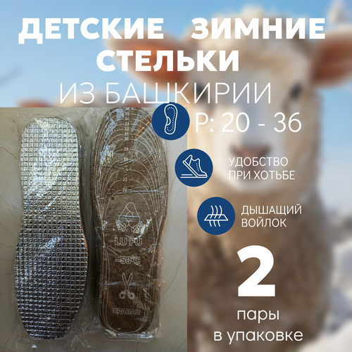 Детские стельки (зимние) из Башкирского войлока. 2 пары.