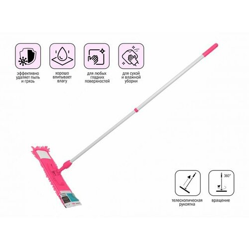 Швабра для пола с насадкой из микрофибры, фуксия, PERFECTO LINEA (Телескопическая рукоятка 67-120 см) (43-392045)
