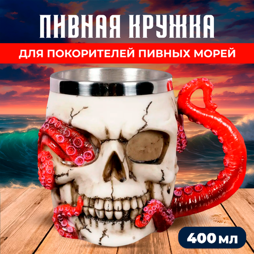 Подарочная пивная кружка череп, кружка для пива с 3D дизайном "Осьминог", 400 мл