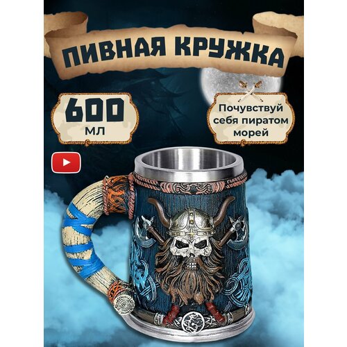 Пивная кружка с 3D дизайном "Викинг", 550 мл, кружка для пива подарочная