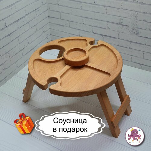 Винный столик деревянный, Поднос столик из Бука, Винный столик с менажницей из дерева, Мастерская Осьминожки