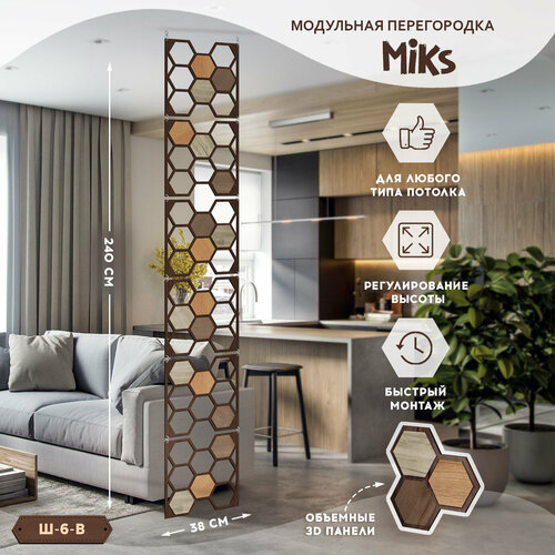 Ш-24-В Венге Ширма-перегородка подвесная модульная MiKs для зонирования комнаты, салона красоты, офиса, кафе, дома, гостиной и детской, интерьерная