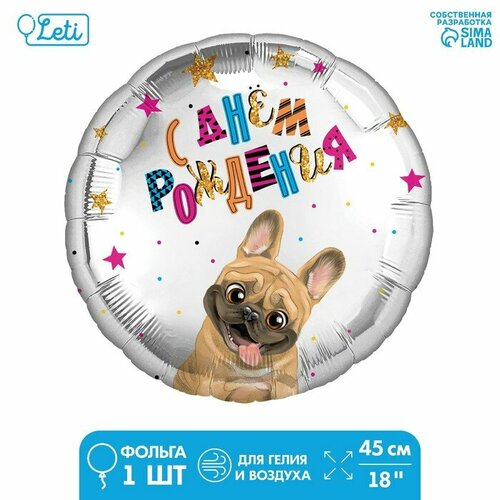 Фольгированный шар 18" «С др, песик» круг(5 шт.)