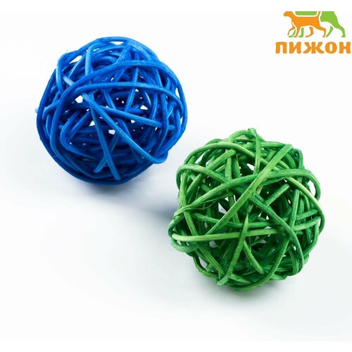 Набор из 2 плетёных шариков из лозы без бубенчиков, 5 см, синий/зелёный 7673136