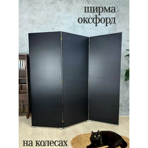 Ширма перегородка для зонирования комнаты черная 3 створки модульная