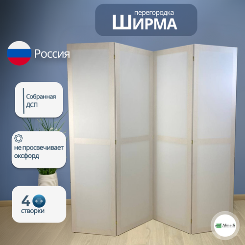 Ширма перегородка интерьерная для зонирования белая 4 створки