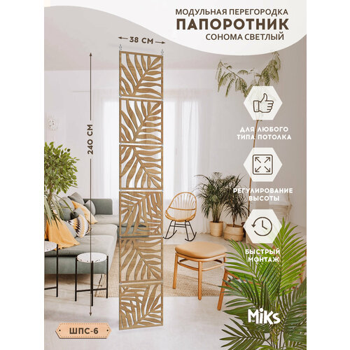 ШПБ-6-ДСС Папоротник Ширма-перегородка подвесная модульная MiKs для зонирования комнаты, салона красоты, офиса, кафе, дома, гостиной и детской, интерьерная