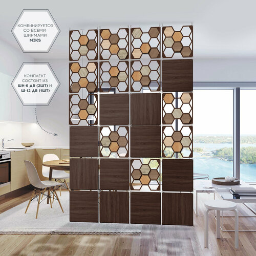 Ш-24-В Венге Ширма-перегородка подвесная модульная MiKs для зонирования комнаты, салона красоты, офиса, кафе, дома, гостиной и детской, интерьерная