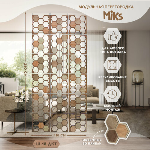 Ш-18-ДКТ Ширма-перегородка подвесная модульная MiKs для зонирования комнаты, салона красоты, офиса, кафе, дома, гостиной и детской, интерьерная