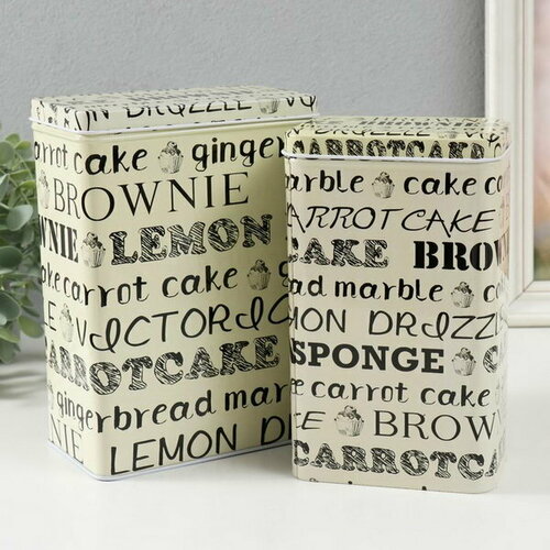 Шкатулка металл прямоугольная "Сладкая выпечка" набор 2 шт 7х11х18.5 8.5х14.5х20 см