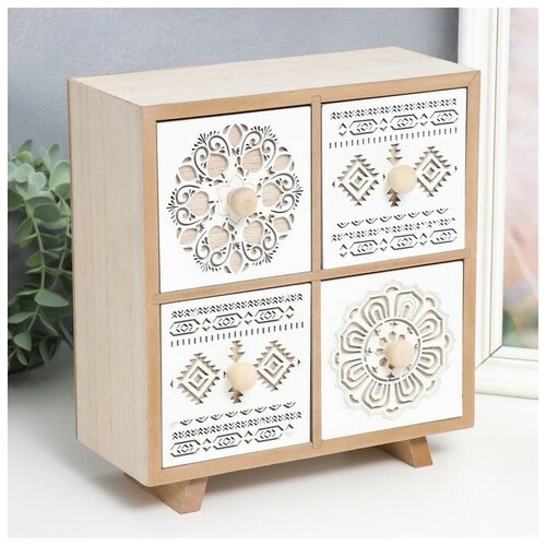 Шкатулка дерево комод 4 ящика "Восточные мотивы" бежево-белая 10х22,3х24,8 см
