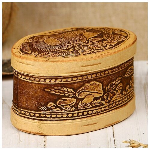 Шкатулка «Ёжик - чудак», овал, 12×8,5×6,5 см, береста