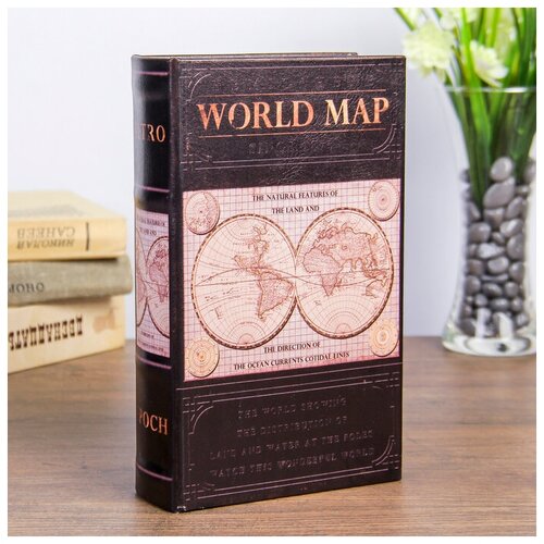 Сейф-книга дерево "Карта мира" кожзам 21х13х5 см