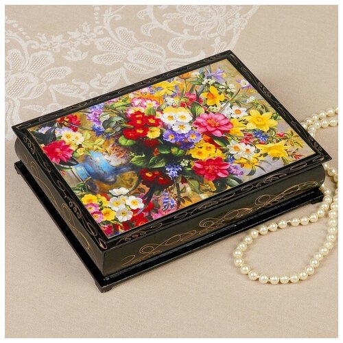 Шкатулка «Букет в вазе», 17×22 см, лаковая миниатюра, микс