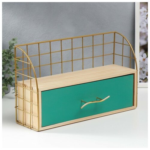 Шкатулка дерево, металл "Комод с открытой полочкой" зелёный 22х10,5х36 см