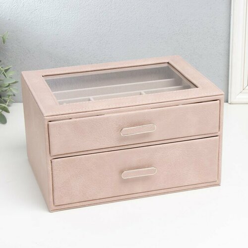 Шкатулка кожзам для украшений "Эльба. Два яруса" розовая 25х18х14 см 9743469