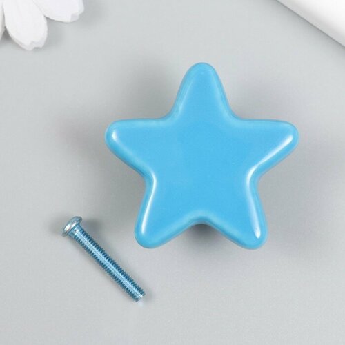 Ручка для шкатулки керамика, металл "Звёздочка" голубая 4,9х4,9х2,2 см 9554886