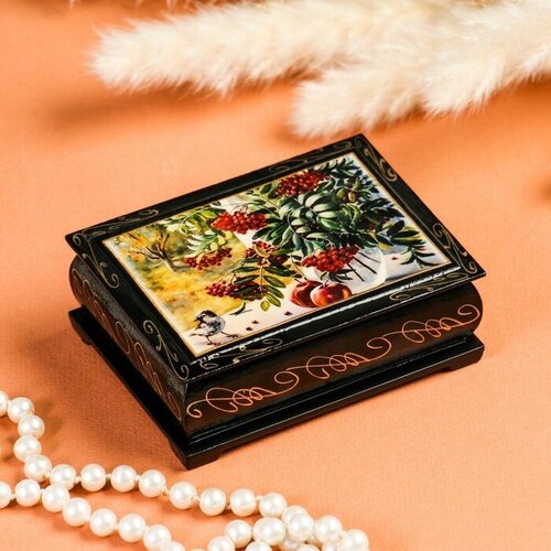 Шкатулка «Рябина на окне», 8?10 см, лаковая миниатюра