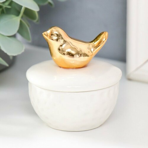 Шкатулка керамика "Золотая птичка" белая 6,5х6,5х7 см 9413461