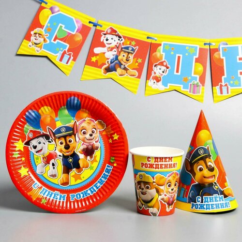 Набор бумажной посуды "С днем рождения!", команда, Щенячий патруль, на 6 персон