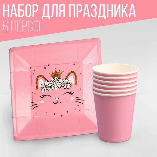 Набор посуды «Котик»: стаканы 6 шт, тарелки 6 шт.