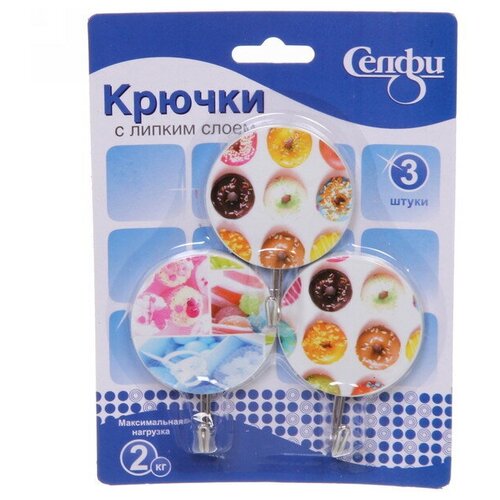 Набор крючков с липким слоем Селфи (3шт, нагрузка 2.0кг) Пирожное
