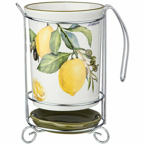 Подставка для кухонных приборов Agness "Лемон три", доломит, 10,5х10,5х16см