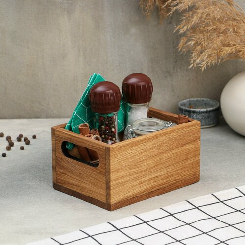 Подставка-органайзер для кухонных принадлежностей, с ручками, 17×12×9 см, дуб