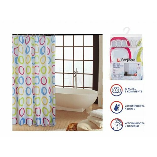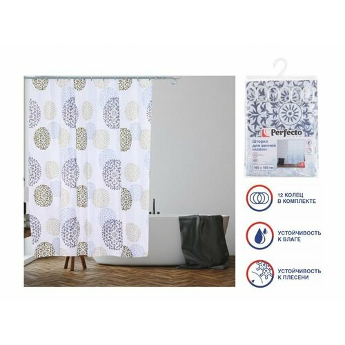 Шторка для ванной (12 колец в комплекте), 180x180 см, Harmony, круги, PERFECTO LINEA (Материал: полиэстер (текстильная)) (36-118012)