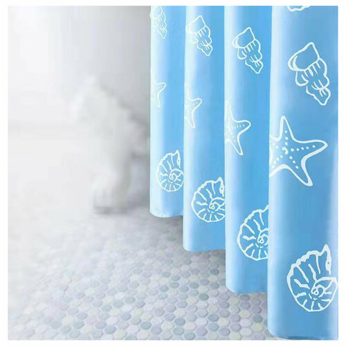 Штора (занавеска) для ванной / душа водоотталкивающая тканевая с кольцами 180 x 180 см Пляж