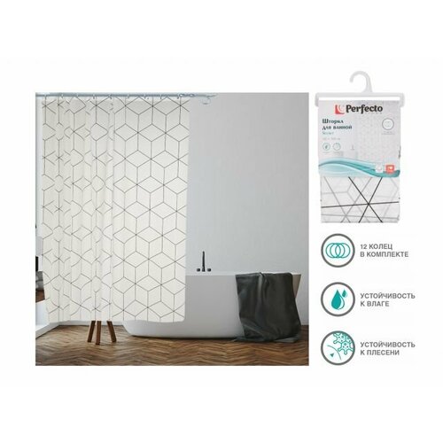 Шторка для ванной (12 колец в комплекте), 180x180 см, Secret, геометрия, белая, PERFECTO LINEA (Материал: пэва) (36-118001)