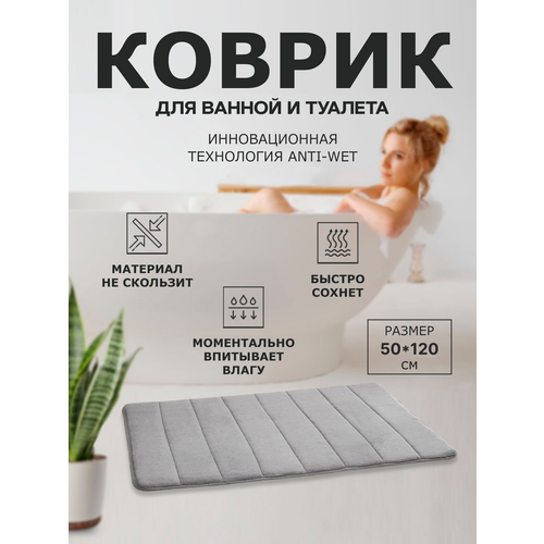 Большой серый противоскользящий быстросохнущий коврик для ванной и туалета