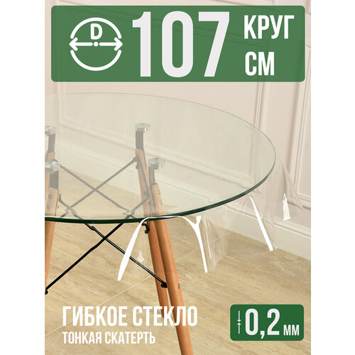 Круглая силиконовая прозрачная скатерть ПВХ, гибкое мягкое стекло 0,2мм диаметр 107см на стол