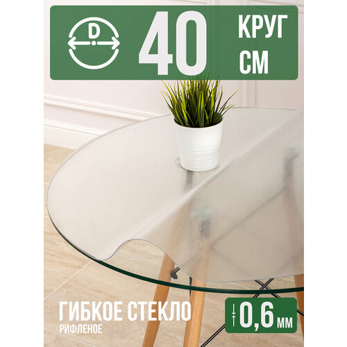 Круглая силиконовая рифленая скатерть гибкое мягкое стекло 0,6мм диаметр 40см