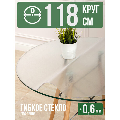 Круглая силиконовая рифленая скатерть гибкое мягкое стекло 0,6мм диаметр 118см