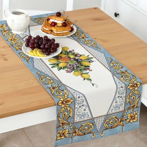 Дорожка 140 х 44 см Le Gobelin Фруктовое ассорти голубой бордюр