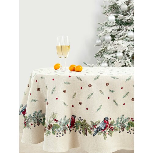 Скатерть Le Gobelin Новогодние друзья Снегири Скатерть овальная 160х250 см