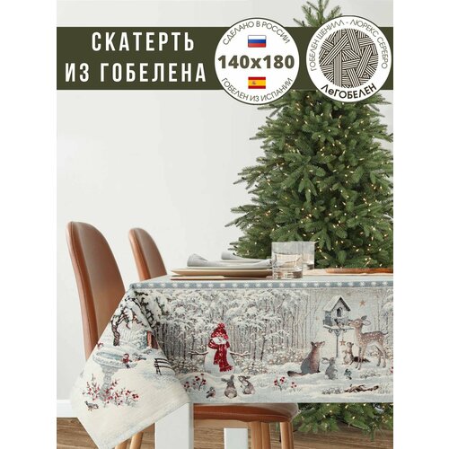 Скатерть Le Gobelin Лесные друзья у кормушки 140х180 см шенил