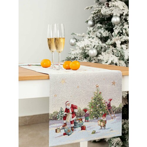 Скатерть Le Gobelin Новогодний вечер бежевый фон 140х280 см