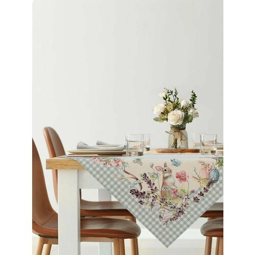 Скатерть праздничная светлая 100*140 для дома на кухню на свадьбу цветы/шелкография