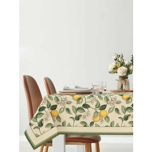 Скатерть Le Gobelin Лимоны Амальфи зеленый бордюр 140х220 см