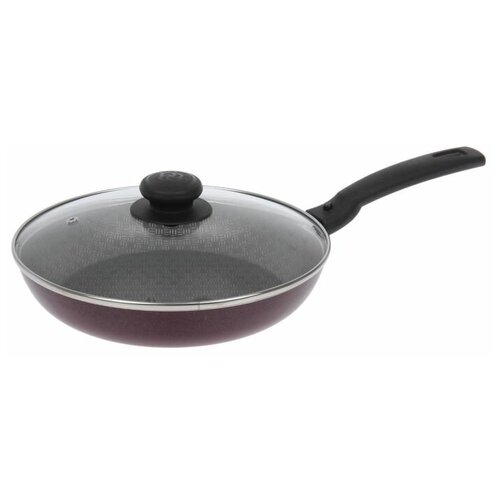 Белая калитва Сковорода «Хозяюшка», d=24 см, съёмная ручка, стеклянная крышка, антипригарное покрытие, цвет бордовый