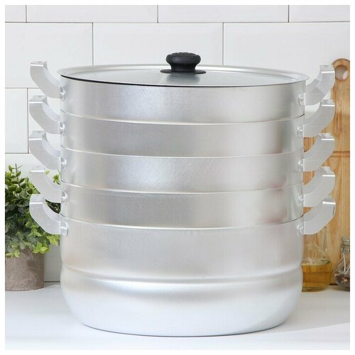 Манты-казан, 13 л, с 4 сетками, высота секции 5 см, металлическая крышка