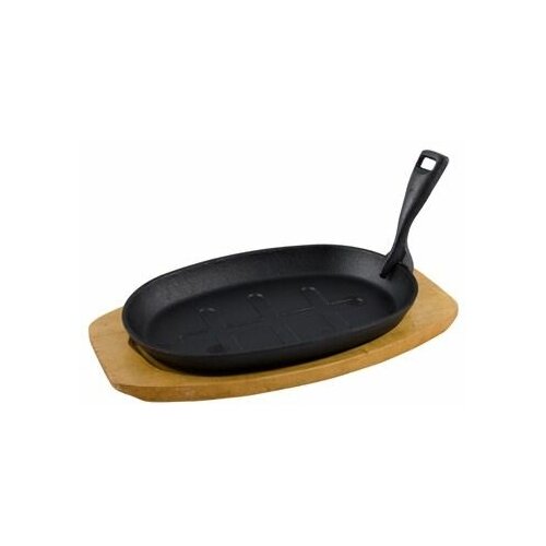 Порционная чугунная сковорода MY REAL IRON COOK 18 см с ушками и на деревянной подставке