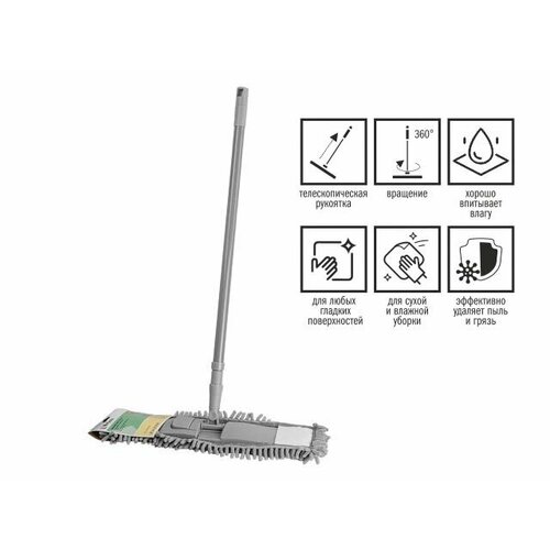 Швабра для пола с насадкой из шенилла, темно-синяя, PERFECTO LINEA (Телескопическая рукоятка 67-120 см) (43-401023)