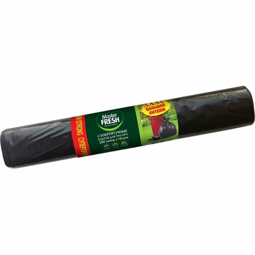 Пакеты черные суперпрочные для мусора 10 шт, 160 л, 28 мкм MASTER FRESH 236533