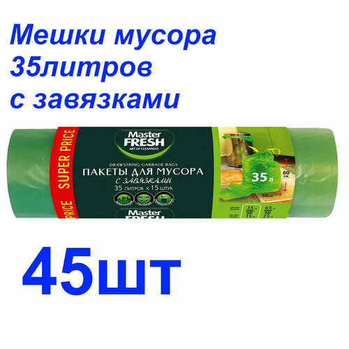 Master Fresh БИОпакеты для мусора с завязками, 35 л, 15 шт в уп, 2 уп