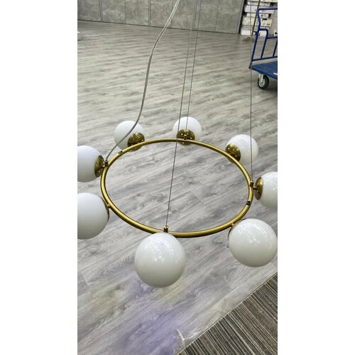 Светильник подвесной с круглыми плафонами белыми, латунь, Е27 * 8