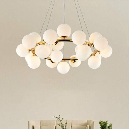 Светильник подвесной с круглыми плафонами белыми, латунь, Е27 * 25