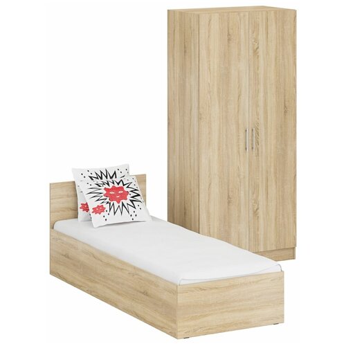 Кровать односпальная 800 со шкафом для одежды 2-х створчатым Стандарт, цвет дуб сонома, спальное место 800х2000 мм, без матраса, основание есть